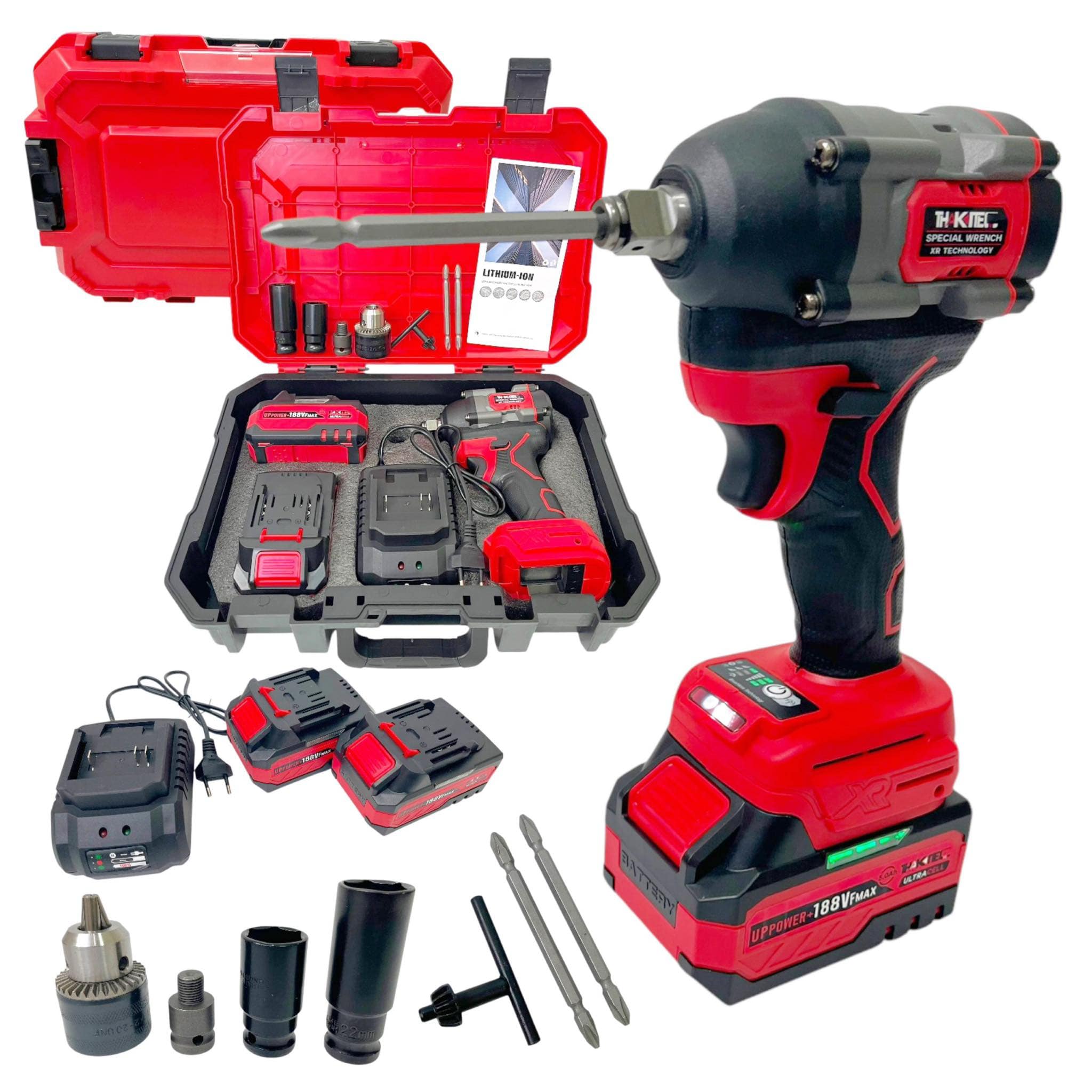 THAKITEC บล็อกกระแทกไร้สาย มอเตอร์บัลเลส 188Vf แบต 2 ก้อน แรงบิด 650 NM พร้อมอุปกรณ์ของแถมมากมาย
