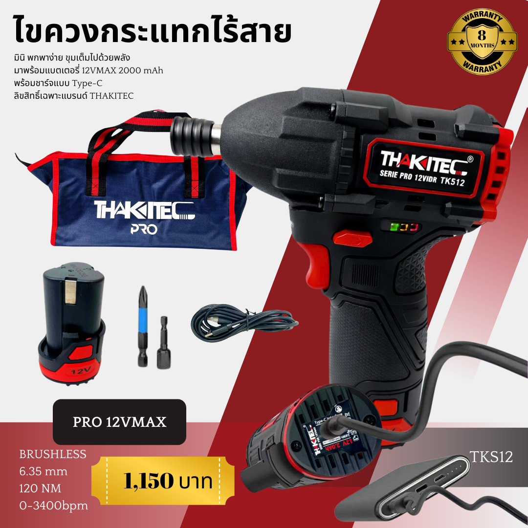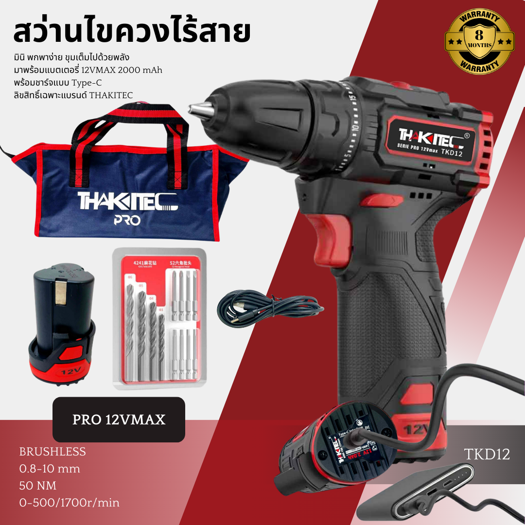 THAKITEC เครื่องตัดแต่งกิ่งไม้+เครื่องเล็มหญ้าไร้สาย แบตเตอรี่ลิเธียมไอออน 12VMAX วัสดุทนทาน ครบชุดพร้อมใช้ รุ่น TKHT12