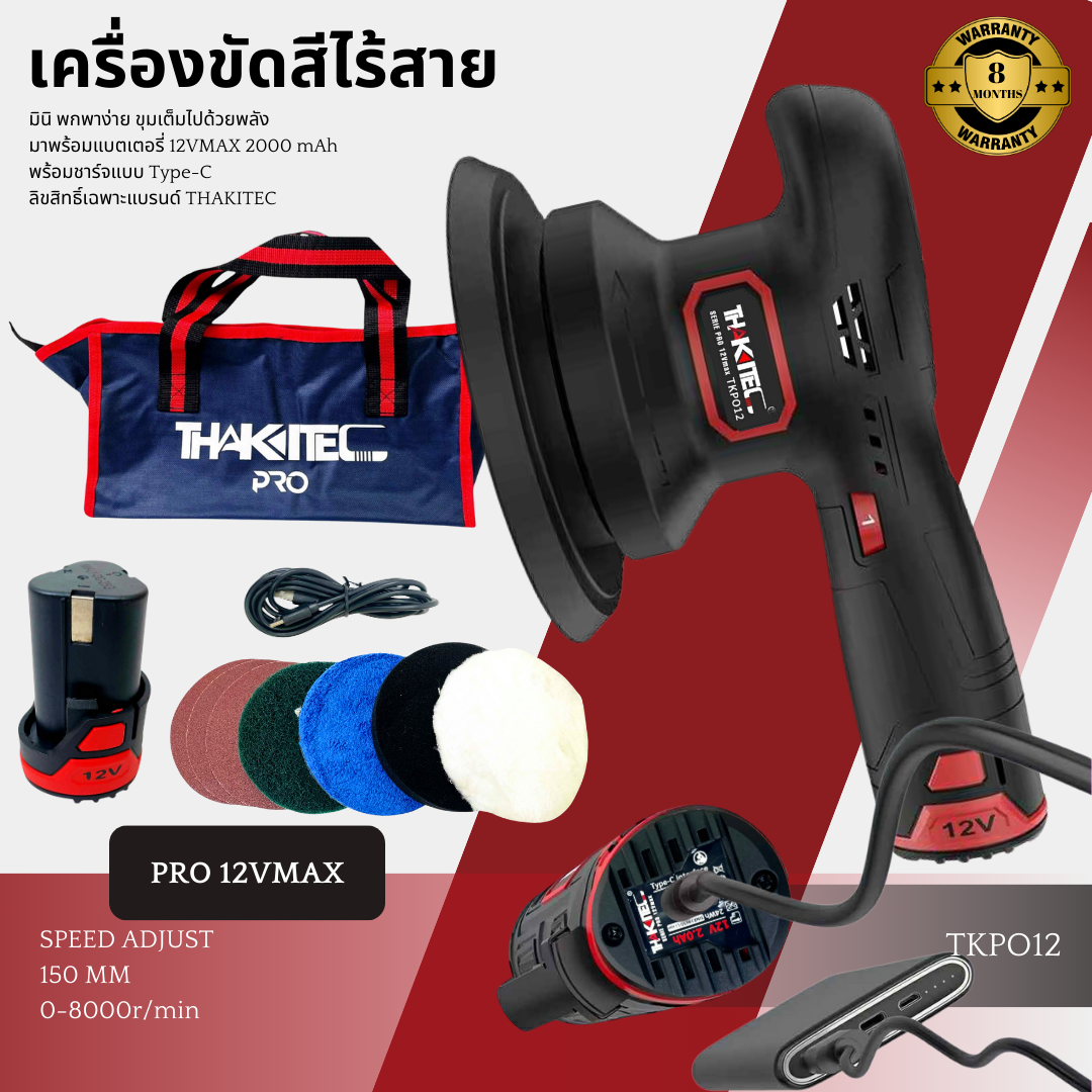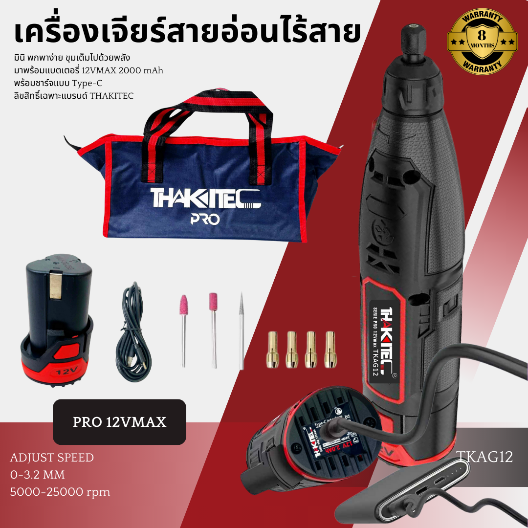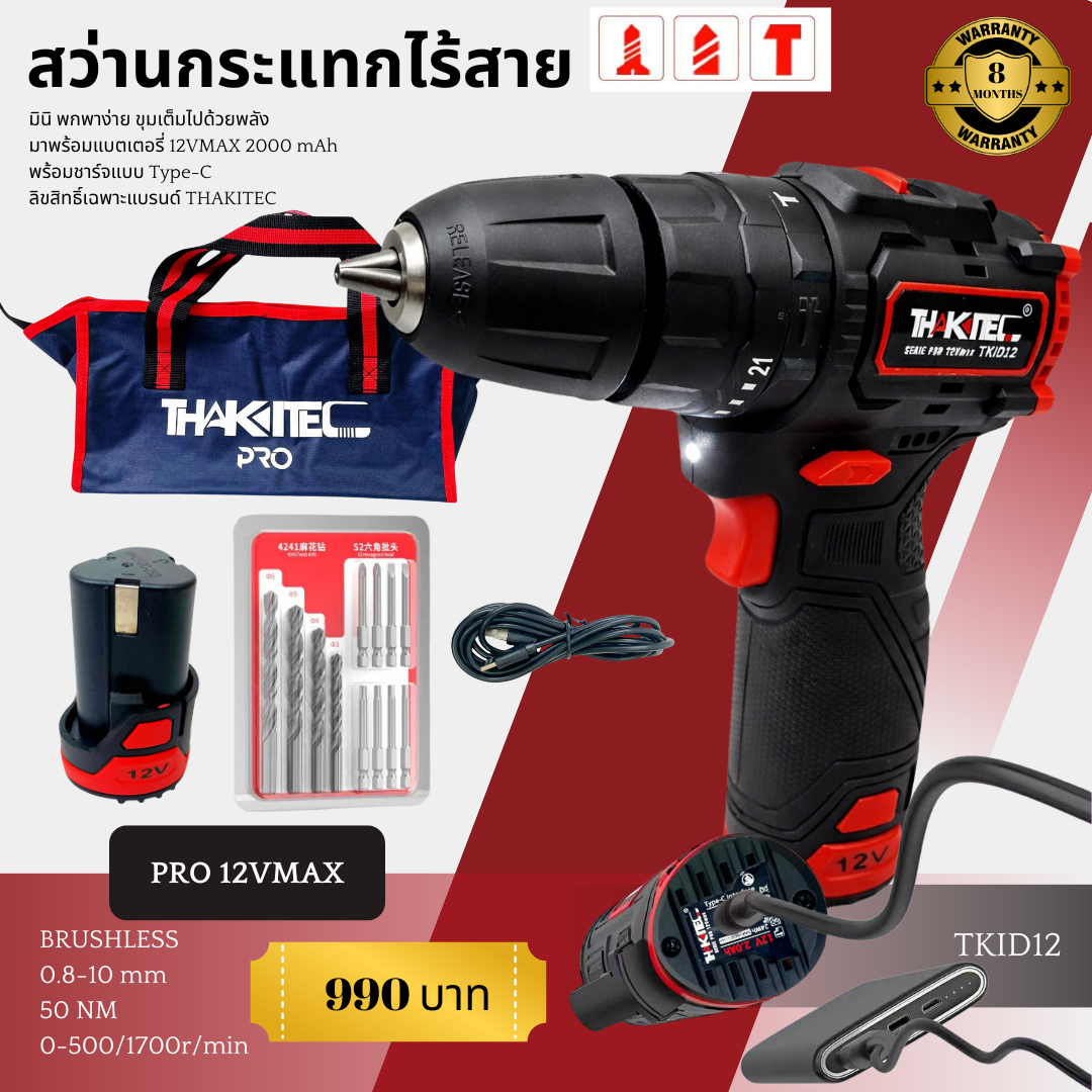 “THAKITEC มาพร้อมซีรีย์ใหม่ ซี่รีย์ THAKITEC PRO 12VMAX มาพร้อมแบตเตอรี่ลิเธียมไอออน 12VMAX ความจุเต็ม 2000 mAh และมาพร้อมกับการชาร์จแบบ TYPE-PORT หรือ TYPE-C หาง่ายและสะดวกกว่าที่เคย