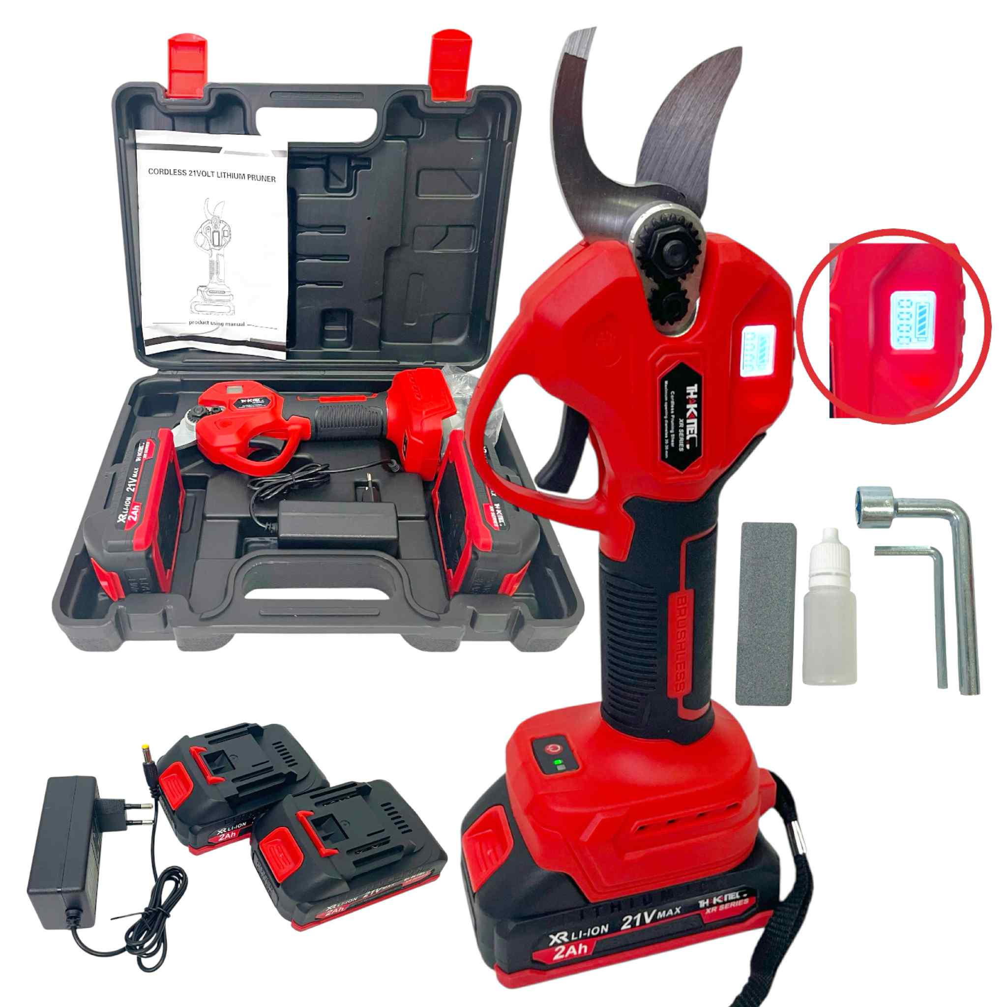 (SERIES XR) THAKITEC กรรไกรตัดกิ่งไม้ไร้สาย บัลเลส ขนาด 30 มม. แบตลิเธียม XR 21V MAX 2 ก้อน ปรับขนาดได้ กรรไกรอเนกประสงค์พร้อมกระเป๋าอย่างดี
